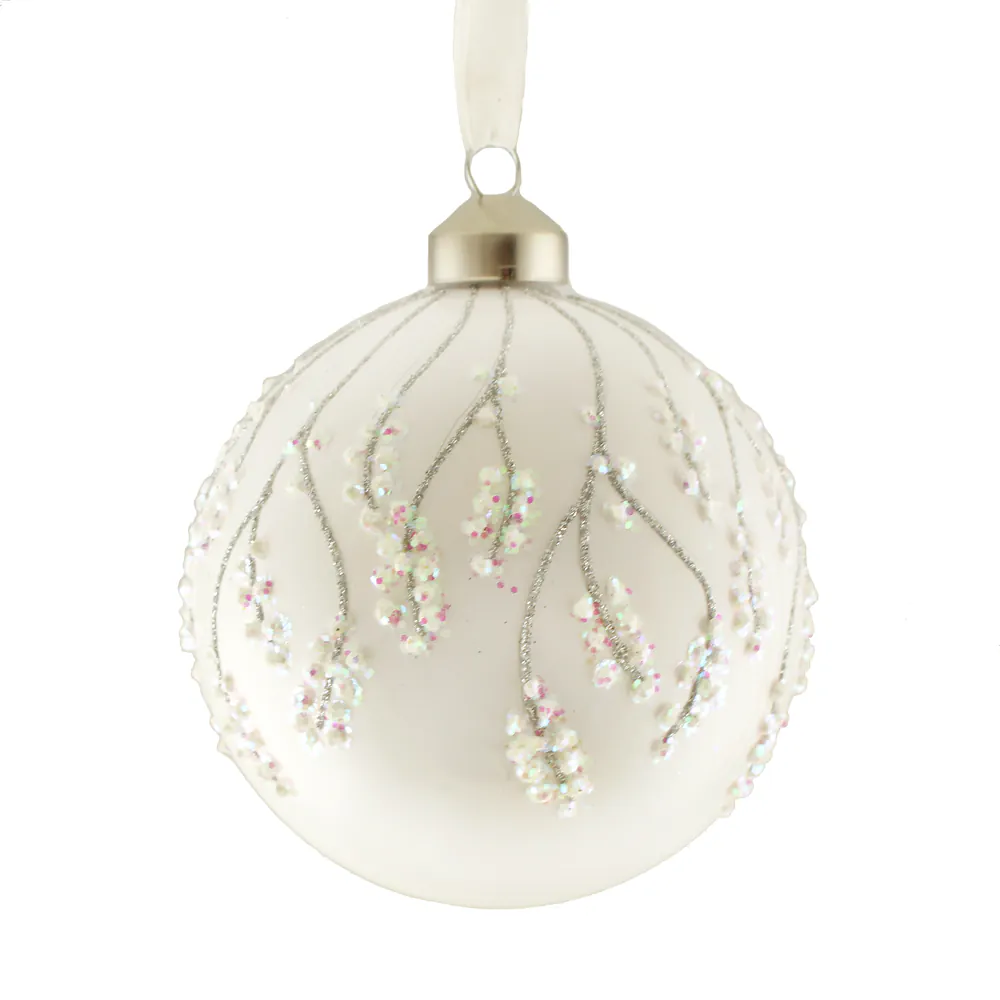 10cm Glass Glittered Blossom Branch Bauble