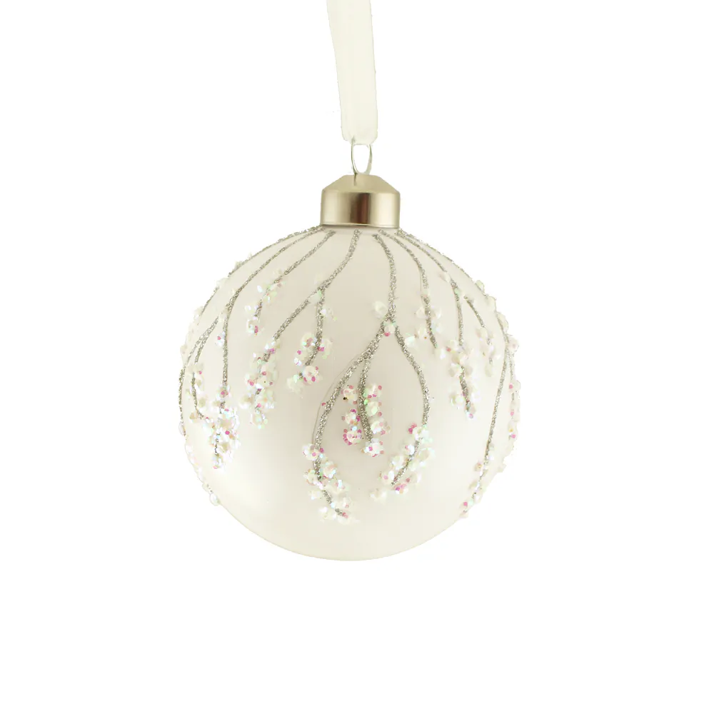 8cm Glass Glittered Blossom Branch Bauble